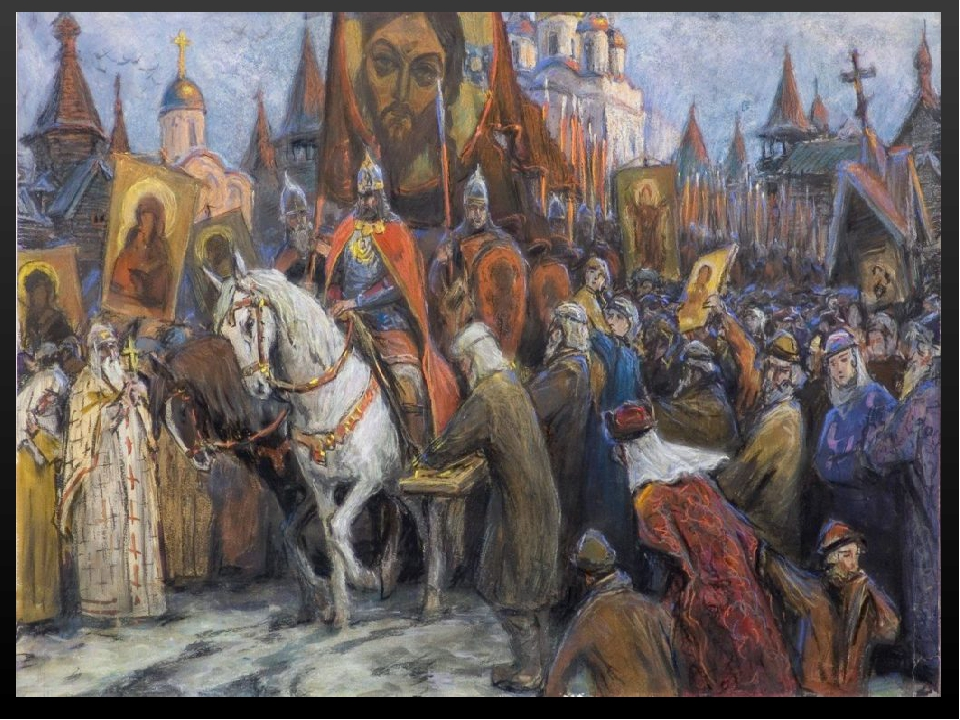 Оставив Владимира в столице, сына своего в Переяславле, а Ростислава Георгиевича послав в Бужск, чтобы охранять тамошние границы и спокойно ждать конца войны, Великий Князь отправился в Смоленск к брату, веселился с ним, праздновал, менялся дарами и расположил военные действия. Он поручил всю рать Смоленскому Князю, велел ему идти к берегам Волги, к устью Медведицы, и приехал в Новгород. Там начальствовал уже не брат его, а сын, Ярослав: ибо Святополк, утратив любовь народную, был переведен Изяславом в область Владимирскую. Граждане давно не видали у себя Великих Князей и встретили внука Мономахова с живейшею радостию. Многочисленные толпы провожали его до городских ворот, где стояли все Бояре с юным Князем. Отслушав Литургию в Софийском храме, Изяслав дал пир народу. Бирючи или Герольды ходили по улицам и звали граждан обедать с Князем. Так называемое Городище , доныне известное, было местом сего истинно великолепного пиршества: Государь веселился с народом, как добрый отец среди любезного ему семейства. На другой день ударили в Вечевой колокол, и граждане спешили на Двор Ярославов: там Великий Князь, в собрании Новогородцев и Псковитян, произнес краткую, но сильную речь. «Братья! – сказал он. – Князь Суздальский оскорбляет Новгород. Оставив столицу Русскую, я прибыл защитить вас. Хотите ли войны? Меч в руке моей. Хотите ли мира? Вступим в переговоры». « Войны! Войны! – ответствовал народ: – ты наш Владимир, ты Мстислав! Пойдем с тобою все, от старого до младенца». Ратники надели шлемы. Псковитяне, Корелы собрали также войско, и Великий Князь на устье Медведицы соединился с братом своим, Ростиславом. Напрасно ждали они возвращения Посла, отправленного ими к дяде еще из Смоленска: Георгий задержал его и не хотел ответствовать на их жалобы. Напрасно ждали и Князей Черниговских, которые остановились в земле Вятичей и хотели прежде видеть, кому счастие войны будет благоприятствовать. 1149 г. Мстиславичи вступили в область Суздальскую: села и города запылали на берегах Волги до Углича и Мологи; жители спасались бегством. Новогородцы разорили окрестности Ярославля, и война кончилась без сражения: ибо весна уже наступала, реки покрывались водою и кони худо служили всадникам. Изяслав, проводив Новогородцев, весновал в Смоленске и благополучно возвратился в столицу, к искренней радости народа. Семь тысяч пленников свидетельствовали его победу.