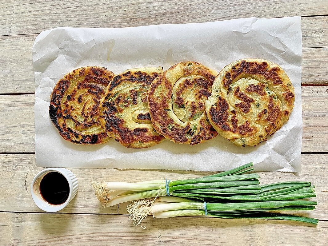 Существует множество рецептов приготовления оладий с молодым чесноком, а сегодняшний был создан по образцу тех, что можно встретить на улицах Шанхая. В Китае осталось не так много уличных торговцев, которые готовят эти лепешки по традиционному рецепту . А доказательство высокого качества и отличного вкуса такоо блюда — очереди из местных жителей и туристов перед прилавками с едой.