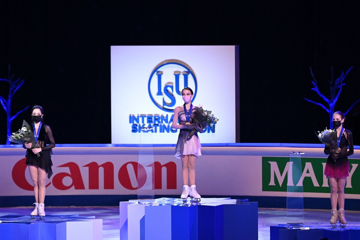 "Бронзу" взяла также представительница России —Александра Трусова, ее произвольная программа была признана лучшей и включила в себя рекордные пять четверных прыжков.