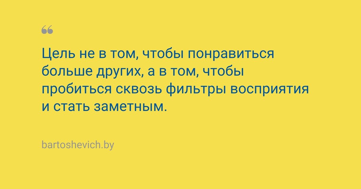 Задача бренд-менеджера — достичь сознания целевой аудитории и там закрепиться. Я часто привожу пример со сперматозоидами, которые борются за возможность оплодотворения яйцеклетки. Эту же аналогию использовал Йенс Нордфальт, описывая задачи маркетолога в точке продаж. Цель не в том, как понравиться больше других, а как пробиться сквозь фильтры восприятия и стать заметным. Успех ждет того, кто сумеет это сделать и затем умело распорядится проторенными «ментальными дорожками».