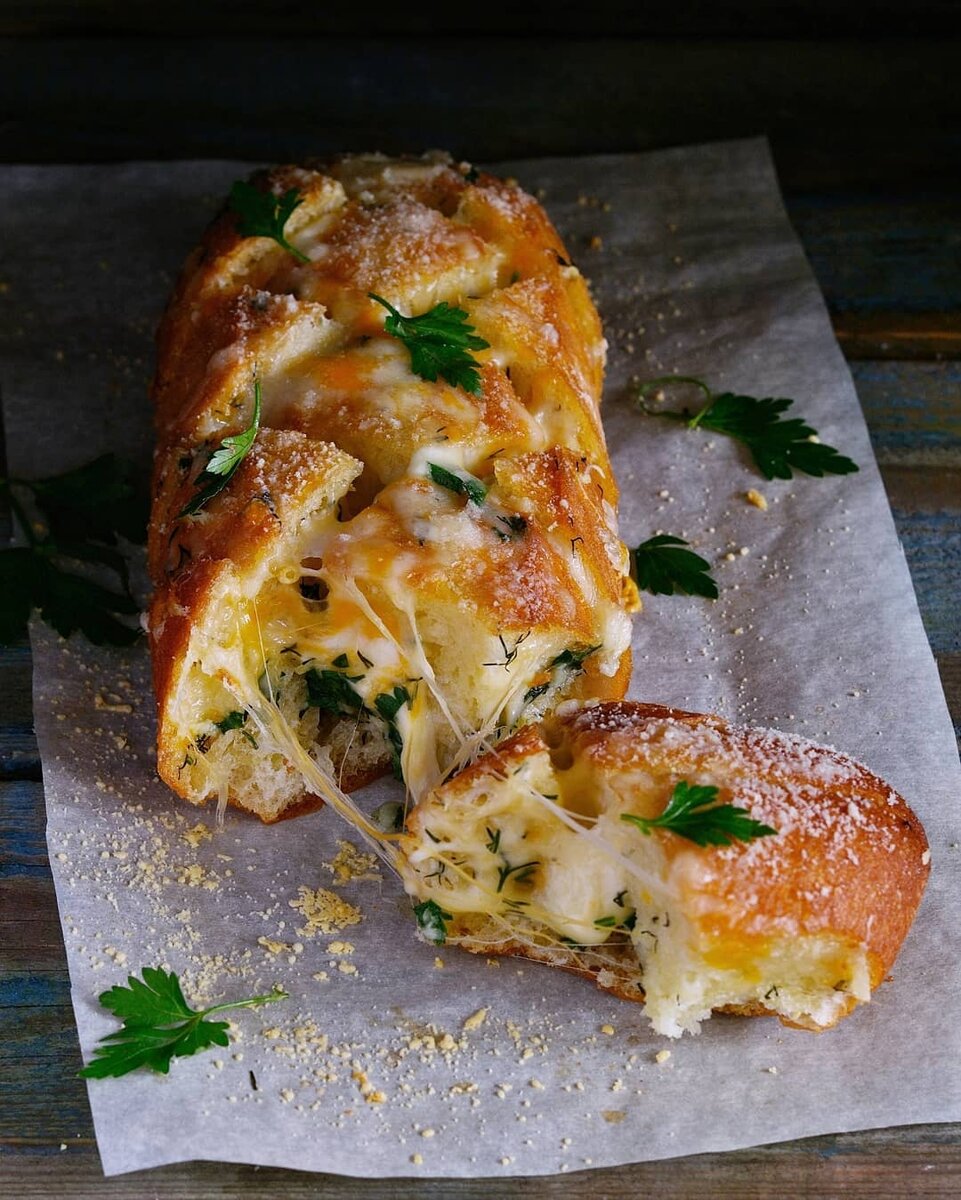 15 минут и очень сырный и вкусный багет на завтрак для всей семьи готов!
