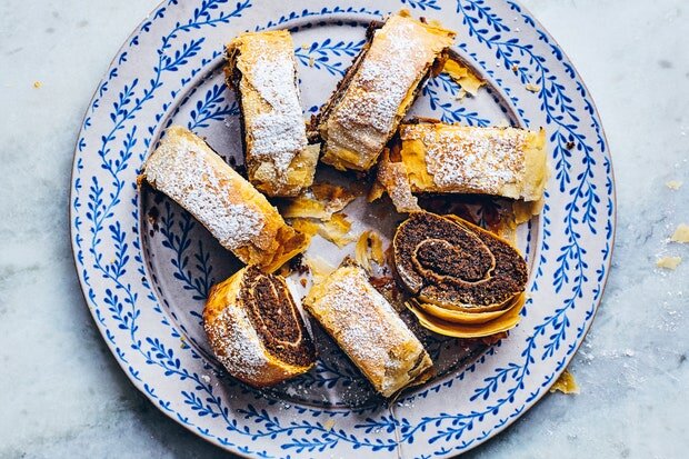 Выпекаем штрудель до золотистого цвета и хрустящей корочки, 40-45 минут. Вынимаем и даем полностью остыть. Перед подачей посыпаем сахарной пудрой и нарезаем на порционные куски.