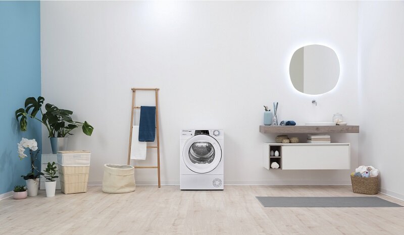 Новая узкая сушилка RO4 H7A1TCEX-07, позволяющая за раз высушить до 7 кг белья, получила большой приподнятый загрузочный люк и удобное управление — как и у сестры-стиралки.