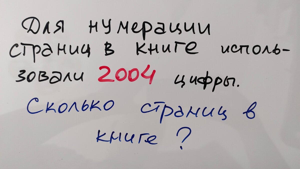 В чем суть? Страницы в книге пронумерованы с первой до последней по порядку. Сколько страниц в книге, если известно использованное количество цифр? В данном случае задача 2004 года,