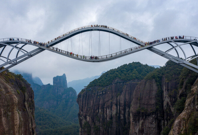 В 2017 году началось строительство двухъярусного моста «Жуйи» (The Ruyi bridge) в китайской провинции Чжэцзян. Дивный пешеходный переход над пропастью был торжественно открыт 1 октября 2020 года в Национальный день Китая.