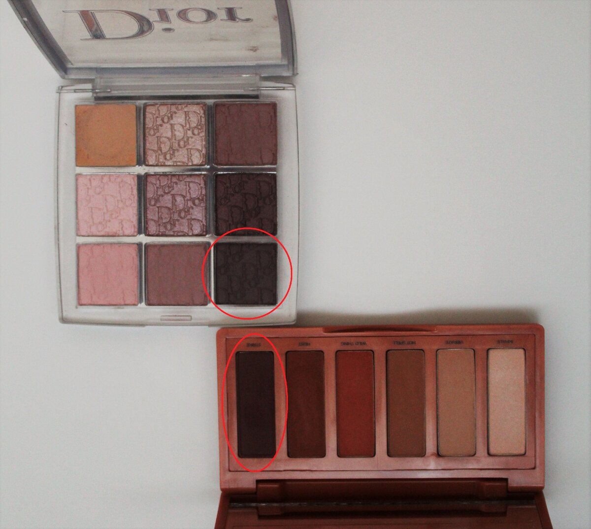 Urban Decay тепло-коричневый, потому что подтон оранжевый, а Dior Backstage - холодно-коричневый, потому что подтон серый.