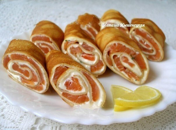 Для приготовления рулетиков из блинов с лососем понадобится: