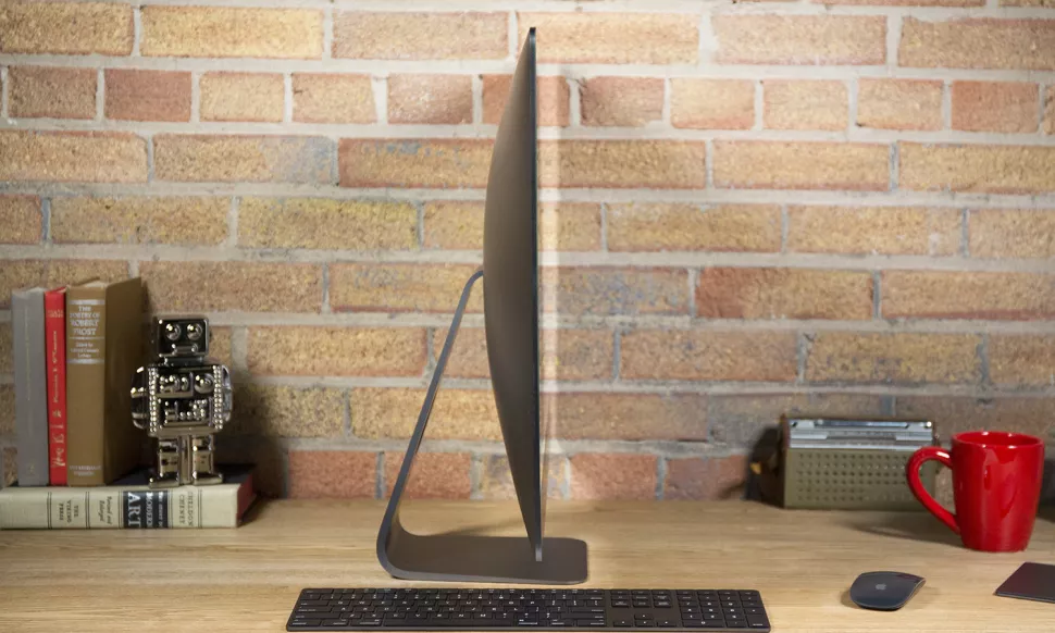 Но перенос дисплея iMac в Pro также приносит с собой некоторые проблемы, и в профессиональной среде эти проблемы проявляются гораздо больше, чем в потребительской модели. Некоторые из них незначительны. Дисплей окружен толстыми черными лицевыми панелями, а для ввода стилусом нет сенсорного устройства или цифрового преобразователя, как в Microsoft Surface Studio.