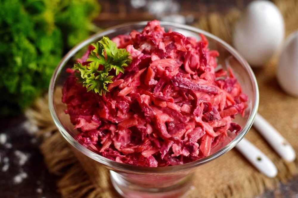 Салаты из сырых овощей с грубой клетчаткой очень часто называют Щеткой. В этом рецепте также используются сырые овощи – свекла и морковь, но Щеткой его уже не назовешь, поскольку овощи сглаживает плавленый сырок. Мягкий сыр отлично дополняет не только грубую текстуру овощей, но и их вкус. Для пикантности в салат добавляется чеснок, его количество можно регулировать самостоятельно. Заправлять