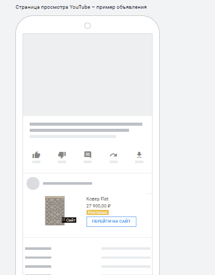 Данные объявления будут показаны практически во всех местах размещения, в том числе сайтах с установленным КМС, Youtube и Gmail. Пример объявления в Youtube: