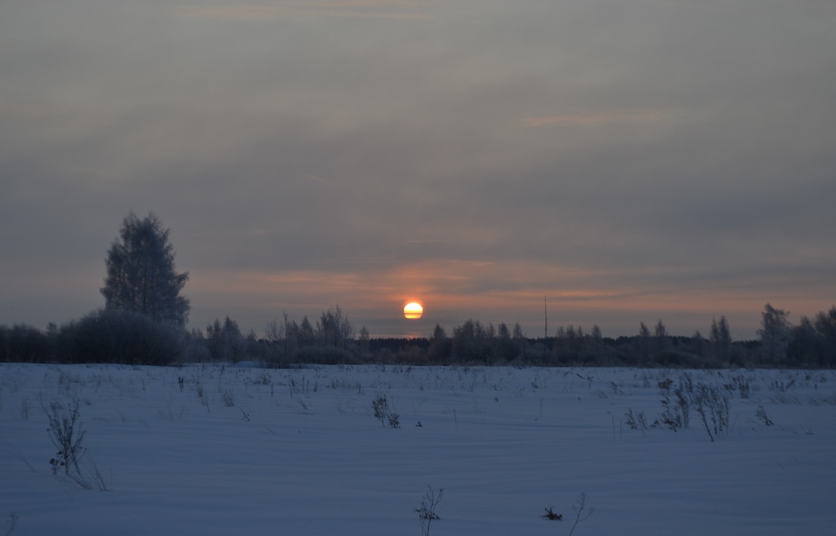 Мороз и утренний восход Солнца, все деревья одеты в серебряные наряды, иней на ресницах, экстремально, но красота неописуемая.
