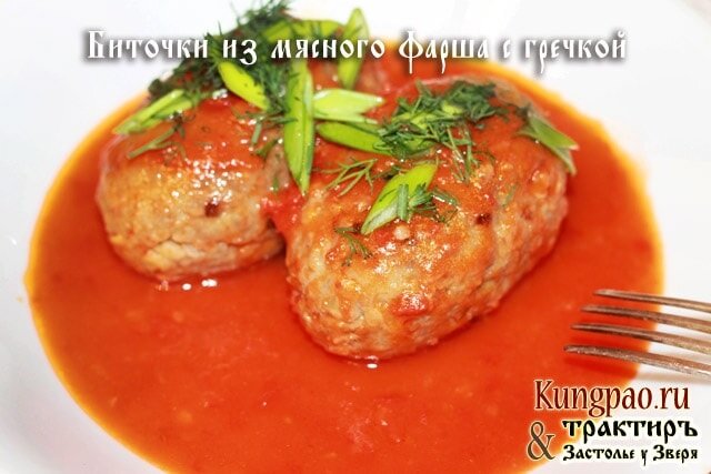 • мясной фарш («домашний» 50% говядины и 50% свинины, или свиной) - 250 г, • гречневая крупа (ядрица, продел) - 1 стакан, • сливочное масло - 1 ст.л., • растительное масло - 2 ст.л., • репчатый лук – 1 шт. (крупная), • куриные яйца - 1 шт., • соль - 0,5 ч.л., • молотый черный перец -0,25 ч.л., • пшеничная мука – 2-3 ст.л., • томатный соус – 200 г.