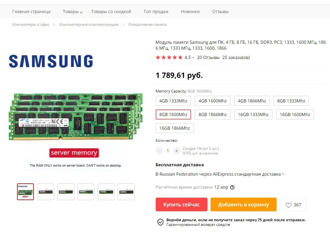 Приветствую Вас, уважаемые любители компьютеров и компьютерных игр! Если вы когда нибудь искали комплектующие для ПК на китайских сайтах, то наверняка увидели, что "серверная" оперативная память стоит намного дешевле не серверной. Итак, серверная память от Samsung модуль на 8 Гигабайт, с частотой 1600 мгц, сейчас стоит 1789 рублей. В то время, когда не серверная память от той же фирмы, такого же объема и той же частоты стоит уже 2644 рубля! Столь значимая разница в цене сильно подогревает желание сэкономить, и купить серверную память. Но будет ли она работать в обычном ПК? С одной стороны ответ на этот вопрос однозначен - не будет, об этом пишут и в описании товара. Но что если использовать серверный процессор Xeon, заработает ли тогда серверная память на обычной материнской плате? Первой я проверил систему на 775 сокете. Это материнская плата на G41 чипсете, от фирмы Asrock. Она поддерживает DDR3 память. К ней я поставил процессор Xeon E5450, который купил на алике. Мать была прошита