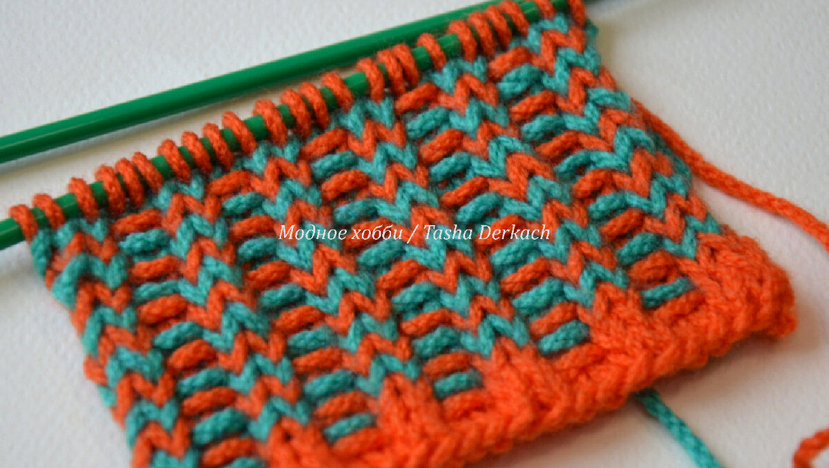 Можно узор вязать одним цветом, а можно чередовать каждые 2 ряда)