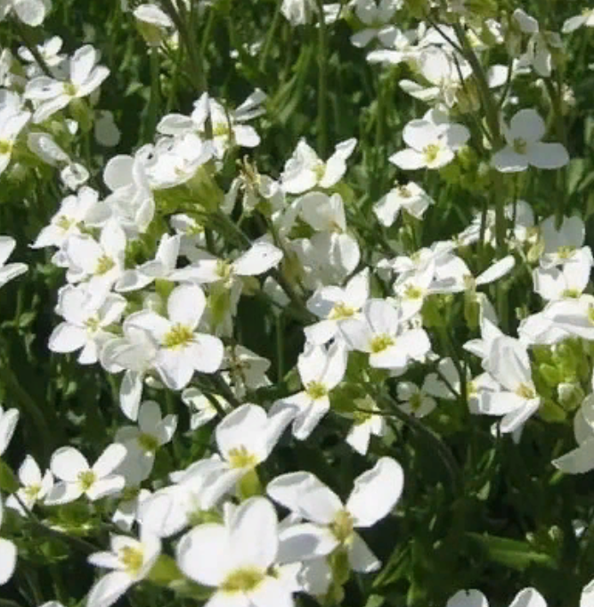 Цветет арабис обильно в апреле-мае. Семена нужно сеять на рассаду весной (март-апрель), а можно в октябре сразу на клумбу. Посев не глубокий, не более 0,5 см. Стебли способны укореняться, так он и завоевывает территорию. Выращенный рассадным способом скорее всего