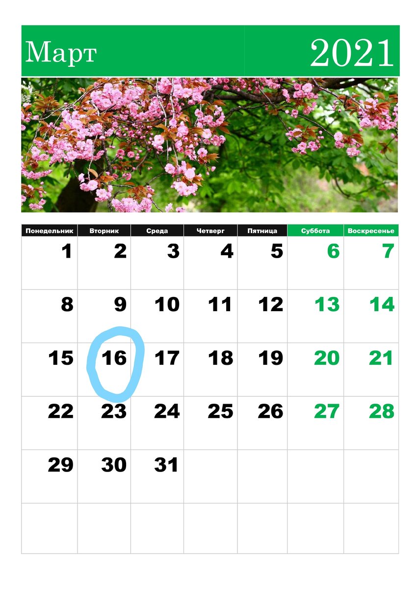 Итак, на календаре 16 марта. Отмечаем тот, который больше всего вам нравится!