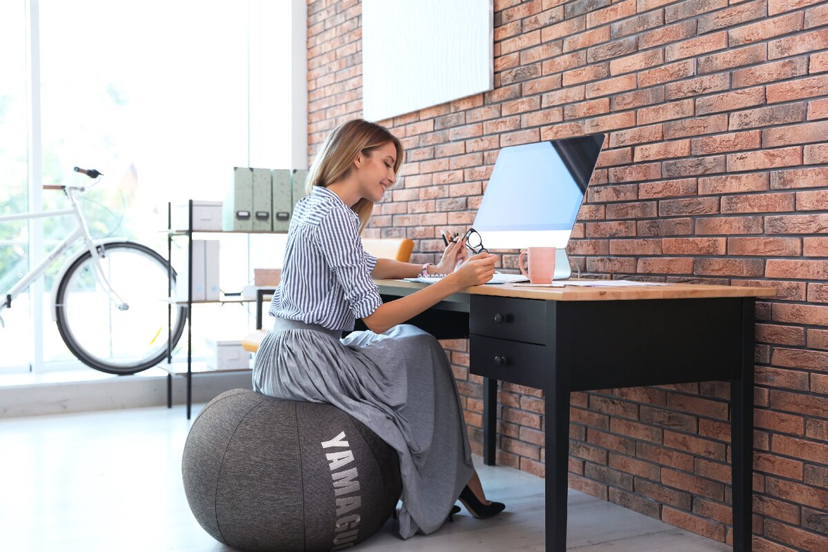 2. Измените своё рабочее место. Именно там вы проводите большую часть своего дня и оставляете драгоценное здоровье. Кресло должно быть с комфортной спинкой, поддерживающей осанку. Для сохранения здорового положения позвоночника под поясницу подкладывается специальный валик. А еще можно перенять европейский тренд: британцы массово внедряют в офисы кресла-мячи. Обычный фитбол в специальном чехле Yamaguchi превращается в идеальное кресло для здоровой спины – мышцам приходится балансировать, благодаря чему снимается нагрузка с позвоночника. А сидеть сутуло точно не получится – свалишься!