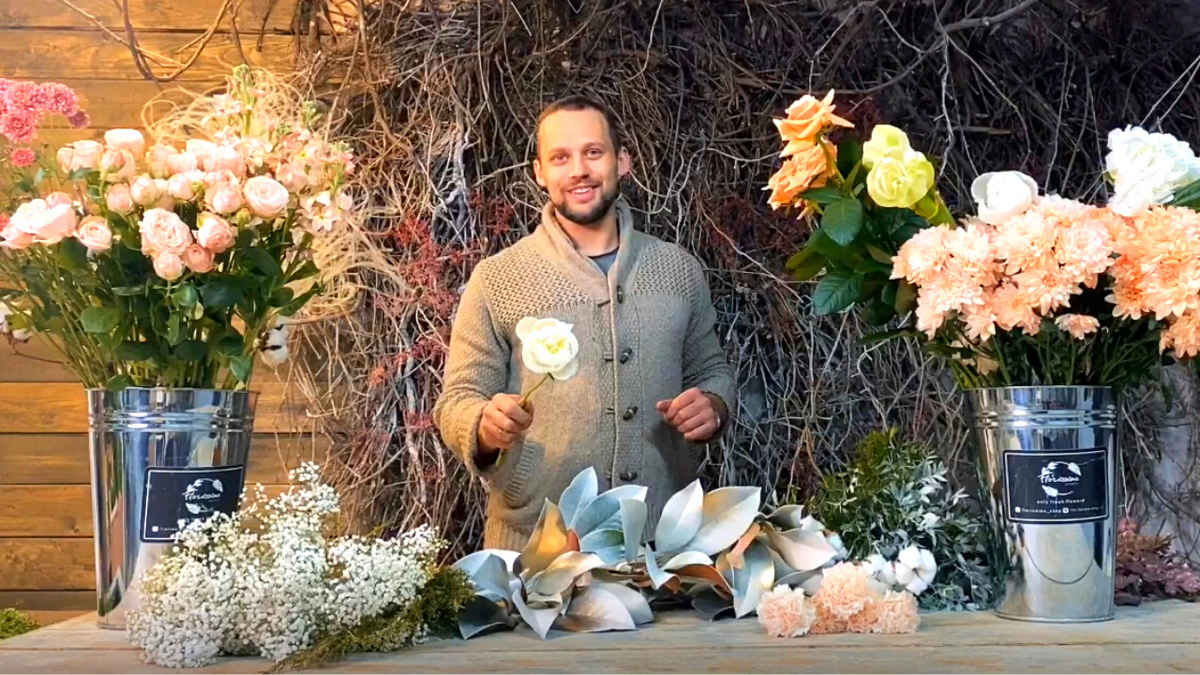 Сегодня собираем букет в белых и светло-персиковых тонах.