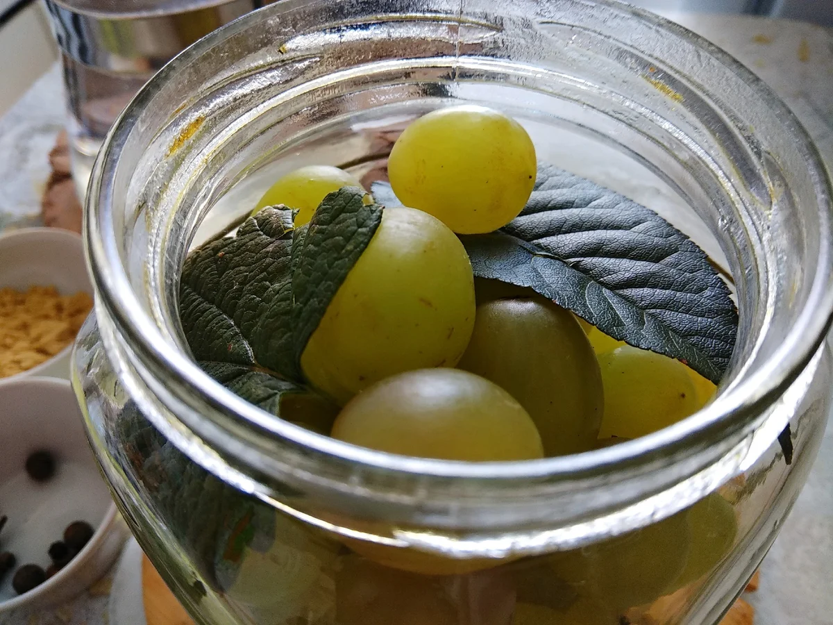 Ягоды не обязательно должны быть неспелыми, важно, чтобы они не были перезрелыми. Кстати, этот рецепт приготовления подходит для яблок и, самое неожиданное – груш! Можно комбинировать яблоки+виноград и груши+виноград. Можно экспериментировать со специями. Узнала, что и красную смородину готовят точно также и это просто взрыв эмоций и радость для вкусовых сосочков. Всё буду пробовать!