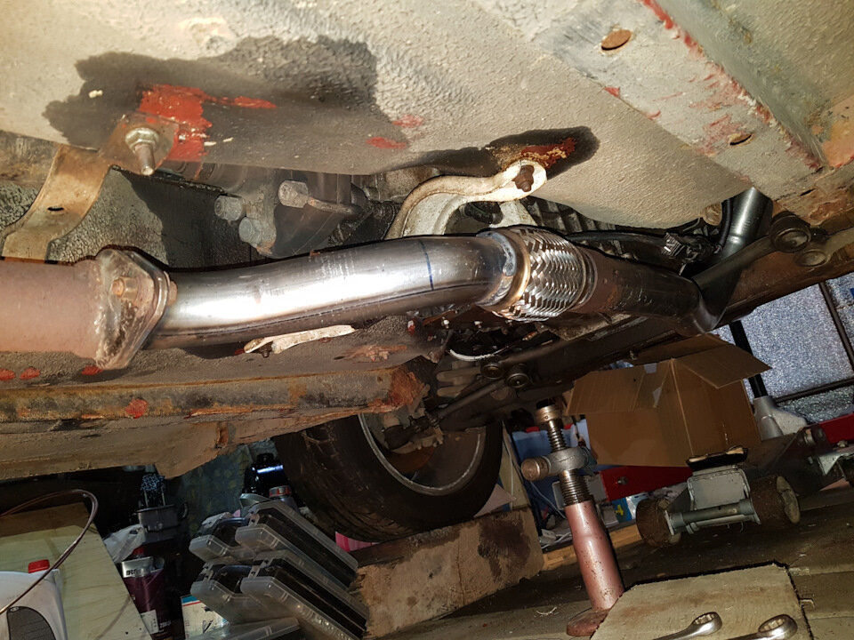 Кусок выхлопной трубы занял сове место, не без домкрата, поставил максимально аккуратно, но мне все-равно не понравилось… Далее придется так или иначе делать выхлоп под заказ, чтобы не мучать окружающих излишним шумом и не страдать самому.