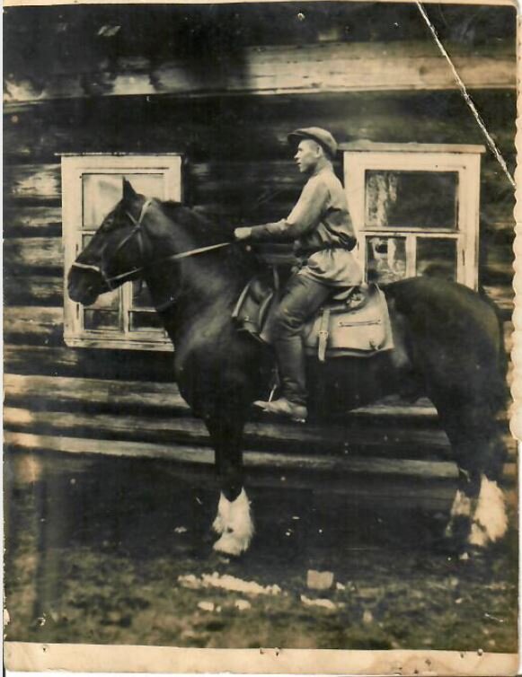 Глава 2. Дед. 120 лет тому назад 28.01.1901 родился мой дед: Соколов Алексей Васильевич (полный мой тезка, точнее я его полный тезка): Родился в селе Копорье, Ермаковского района, Ярославской области (как записано в свидетельстве о рождении). В момент его рождения это место называлось по-другому : село Копорье, Копорьевской волости, Мологского уезда, Ярославской губернии. Какое образование он получил, я не знаю, но был наверно самым грамотным в селе, потому, что работал в магазине, а когда началась коллективизация, его избрали председателем колхоза. Потом он подучился и работал партработником Но это уже после того, как из Копорья они переселились в г.Тутаев перед затоплением Рыбинского водохранилища. Переселялись по реке, раскатав избы и превратив их в плоты. Часть сельчан осталась в Рыбинске, часть доплыла до Ярославля. Дед выбрал Тутаев, так это был небольшой городок и собрал свою избу на левом берегу Волги: И еще одно фото На этом фото запечатлены мои отец с матерью (стоят крайни