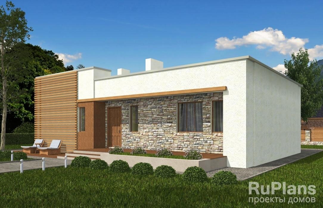 Продолжаю публикации современных домов небольшой площади. Дом выполнен в современном стиле с плоской кровлей. Лаконичность фасадов свойственная минимализму не вступает в противоречие с их декорированием рейкой и облицовочной плиткой. Дом смотрится очень стильно и не вызывает желания, что - то изменить во внешнем облике.
