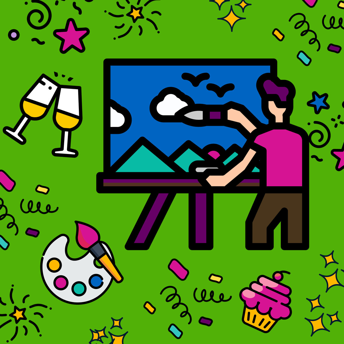 Привет! Мы неутомимые ребята из EventyOn. Устраиваем корпоративы, тимбилдинги и другие яркие мероприятия. Сегодня поговорим об арт-вечериках.