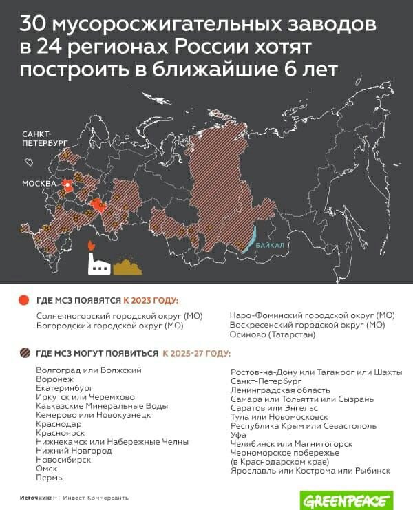В общей сложности мусоросжигательные заводы планируют построить в 24 регионах России. На строительство этих 30 заводов хотят потратить 1,5 триллиона рублей.