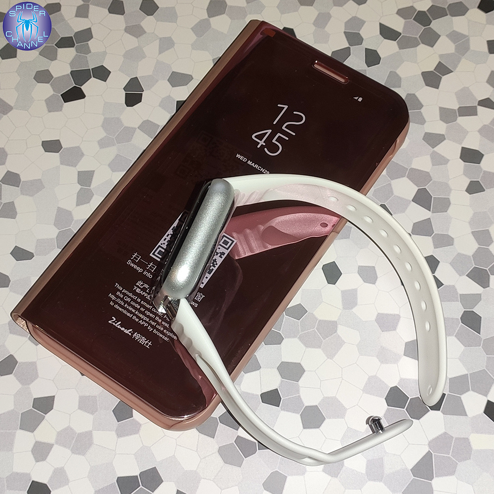 Верх полу-прозрачный, через него, не открывая чехол хорошо видно кто звонит. Если настроить Samsung, на отображение виджета времени в режиме "спячки" будет прекрасно видно.