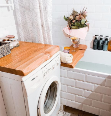 16 Деревянные детали - на заказ у столяра, массив дерева Карагач. Столешница на стиральную машинку и полка на ванную около 8000₽