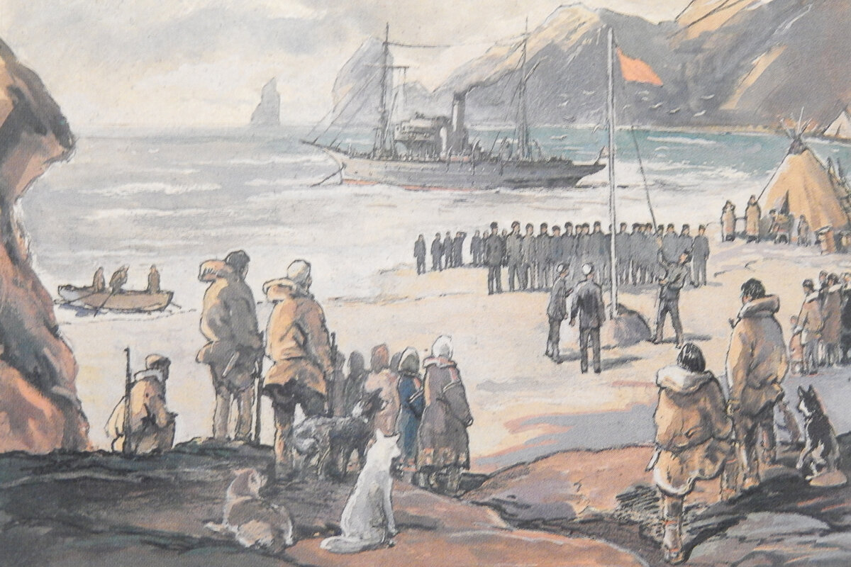 Когда «Красный вымпел» в 1924 году пробился сквозь льды в бухту Провидения, к его борту подошла лодка, на палубу поднялся урядник в парадной форме — с царскими погонами и медалями - и потребовал у командира спустить Красный флаг. В течение трех дней моряки вели на берегу разъяснительную работу среди местного населения, организовали выборы в местный Совет. Узнав, что в России установлена рабоче-крестьянская власть, эскимосы сорвали с урядника погоны и медали и выбросили их в море.