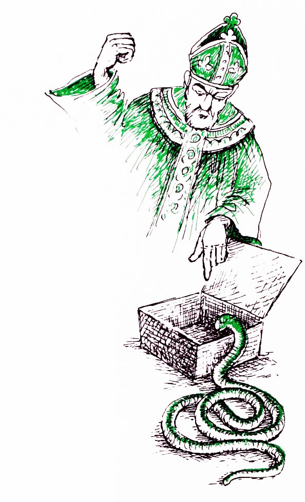 Original: «Shamrocks, Harps, and Shillelaghs: the Story of the St. Patrick's Day Symbols»: St. Patrick and the Serpents (by Edna Barth)
