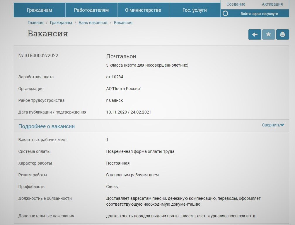 Вакансии "от "Почты России" со странными требованиями были размещены на сайте одного из Центров занятости.