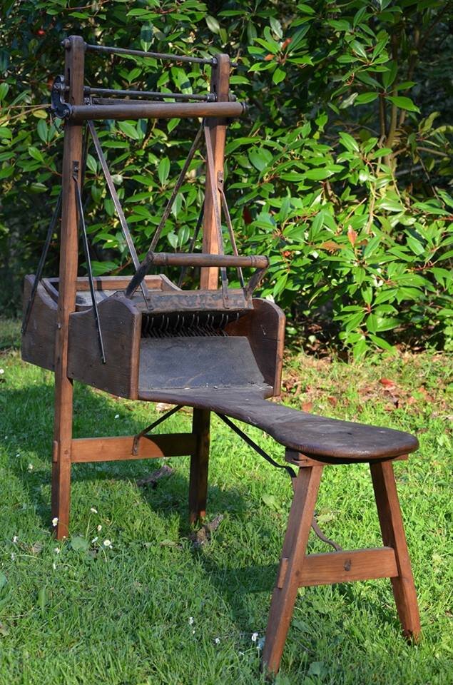 Трепалка — это инструмент, предназначенный для расщепления комков вымытой шерсти на от дельные волокна и шерстинки и предварительного смешивания различных типов волокна между собой. После прохождения через трепалку шерсть разрыхляется и становится воздушной, подготовленной для последующего прочесывания на кардщетках. Наличие трепалки в арсенале пряхи, работающей с руном, вовсе не обязательно, большинство людей расправляют руно руками. Необходимо учитывать также, что во время рыхления на трепалке мы теряем как штапельное или косичное строение руна, так и направление роста шерсти, что может быть важно при гребнечесании и изготовлении высококачественной камвольной пряжи. Кроме того, трепалку нежелательно использовать при обработке тонкорунных видов шерсти. Трепалки бывают двух видов. Трепалка настольная Преимущество данной модели в ее компактности, она помещается на столе и хорошо выполняет свои функции. Трепалка-качели Трепалка-качели, благодаря маятниковому устройству, движет
