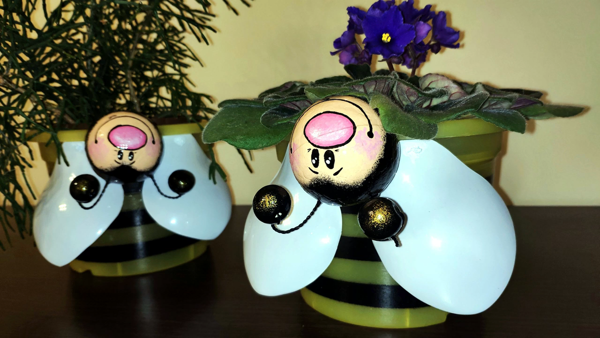 Сегодня я покажу вам, как можно сделать очень милое и симпатичное кашпо для комнатных цветов из несложных и доступных материалов. Эти милые пчёлки поднимут настроение даже в самый пасмурный день.
