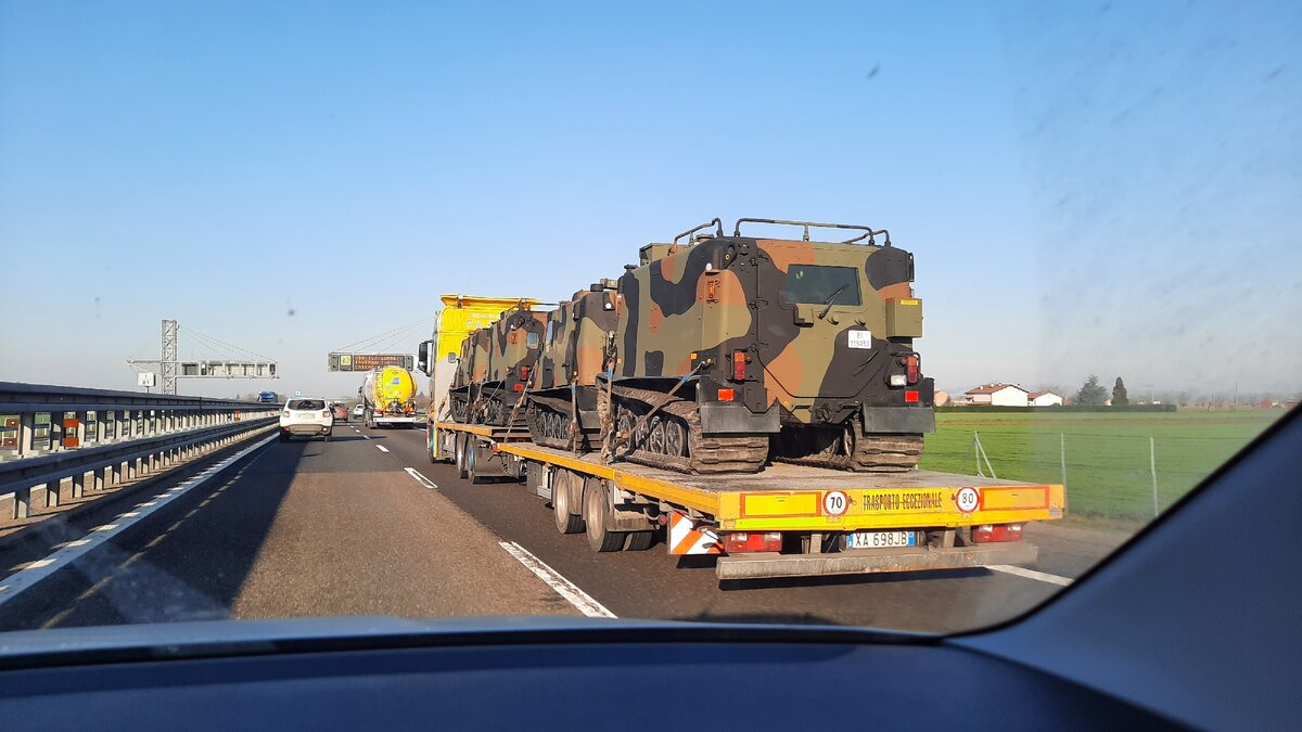 Мы как раз подъезжали к Альпам, вот почему здесь частенько можно встретить военные машины. Армия Alpini не дремлет.