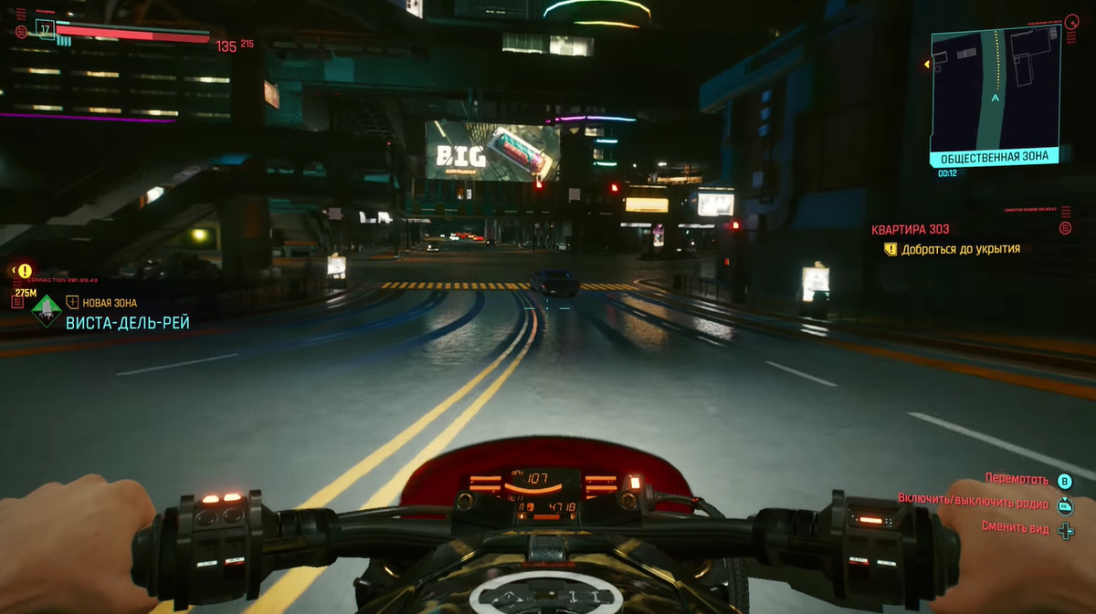 Перестрелка будет недолгой – из-за стремительного врыва бойцов корпорации пол упадет, и Ви провалится на первый этаж. Важно: вы можете нырнуть в дыру рядом с белым неоновым плюсом и подняться по лестнице, чтобы спасти Такэмуру . Игнорируйте слова Сильверхэнда о том, что ему уже не помочь, и нужно спасаться самим.