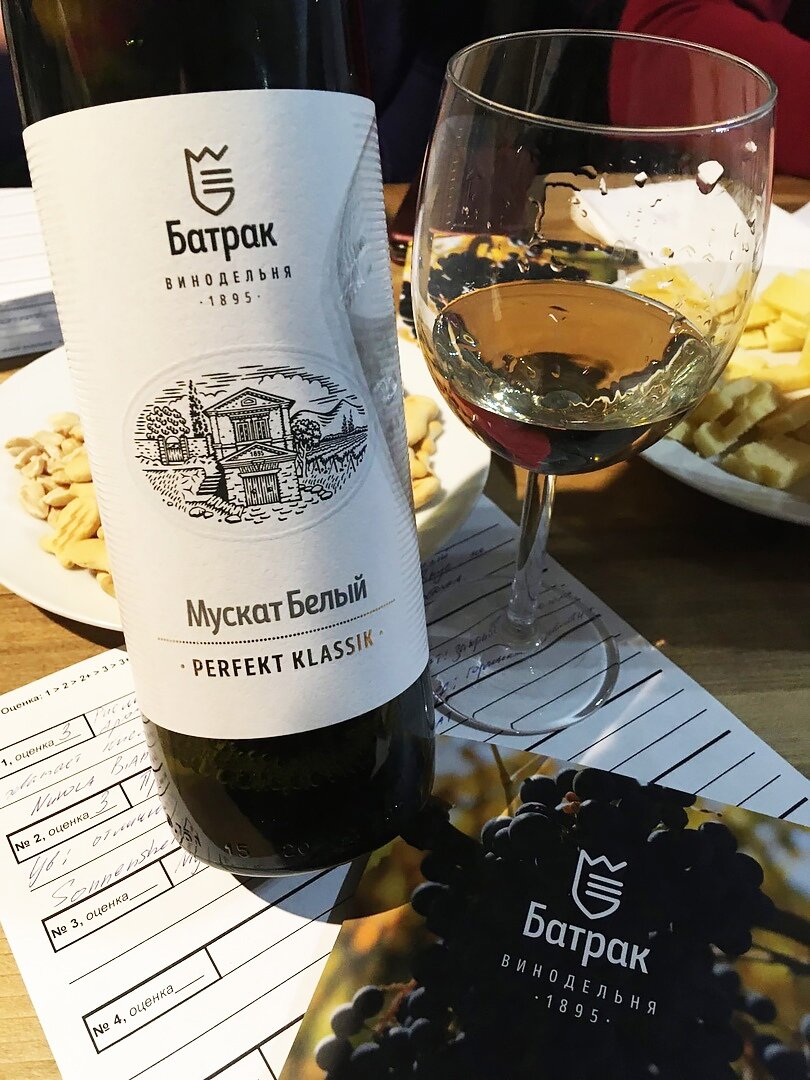 Лидер в личном рейтинге среди белых Мускат Белый Perfekt Klassik: чистое, золотистое в бокале вино, дарит богатый диапазон