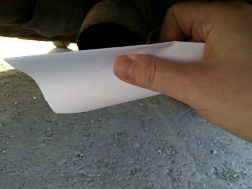 У обычного автомобилиста нет достаточного количества приборов и навыков для проведения подобных работ. Именно поэтому стоит воспользоваться старым способом, который не требует дополнительной подготовки. Для его реализации достаточно воспользоваться листом чистой белой бумаги. Берём его с собой и запускаем двигатель автомобиля. Нам также потребуется помощь второго человека.