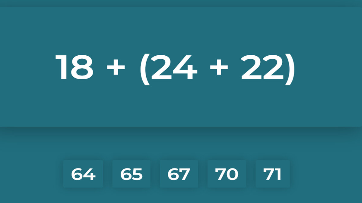 Все же я большой сторонник тестов на скорость счета. Поэтому первый тест будет посвящен этому. Вам предложен математический пример, за 20 секунд решите его и напишите ответ в комментарии.