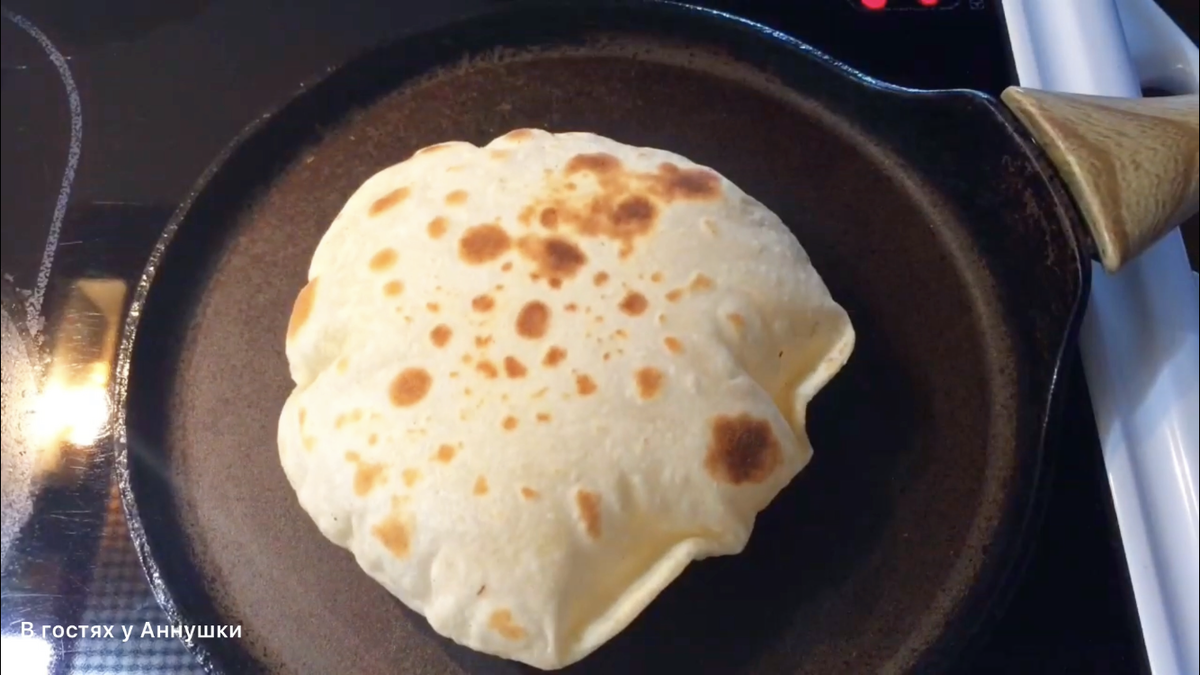 Через 30-40 секунд снова переворачиваю лепёшку на другую сторону.