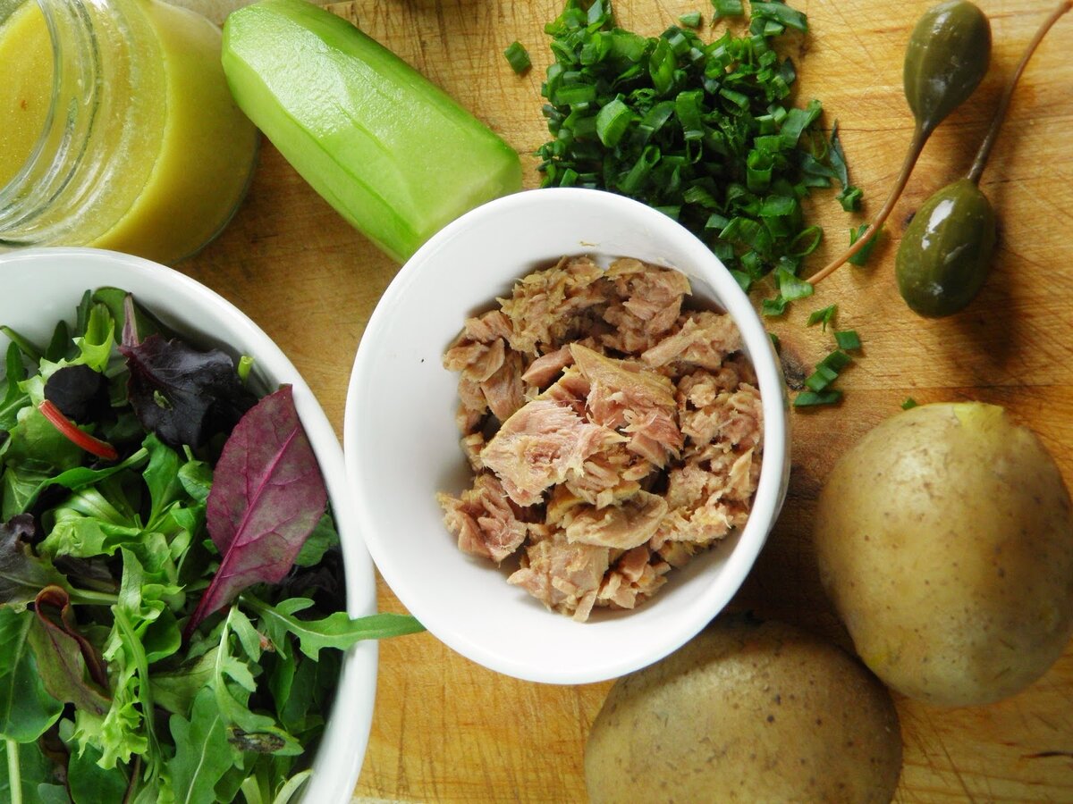 80-100 г кусочков тунца в собственном соку или в масле
