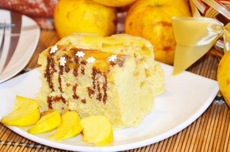 Шаг 9. Вот пирог в разрезе. Он рыхлый и абсолютно готов! Готовьте чай и зовите родных наслаждаться вкусным и быстрым десертом.