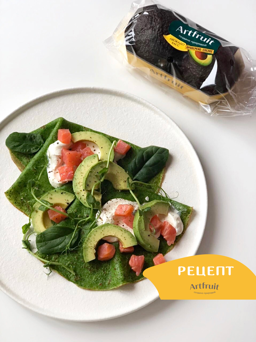 3️⃣Выпекаем блинчики. Авокадо нарезаем кусочками. Сервируем блюдо: выкладываем блины, сметану, семгу, авокадо, добавляем зелень по вкусу и перчим.
