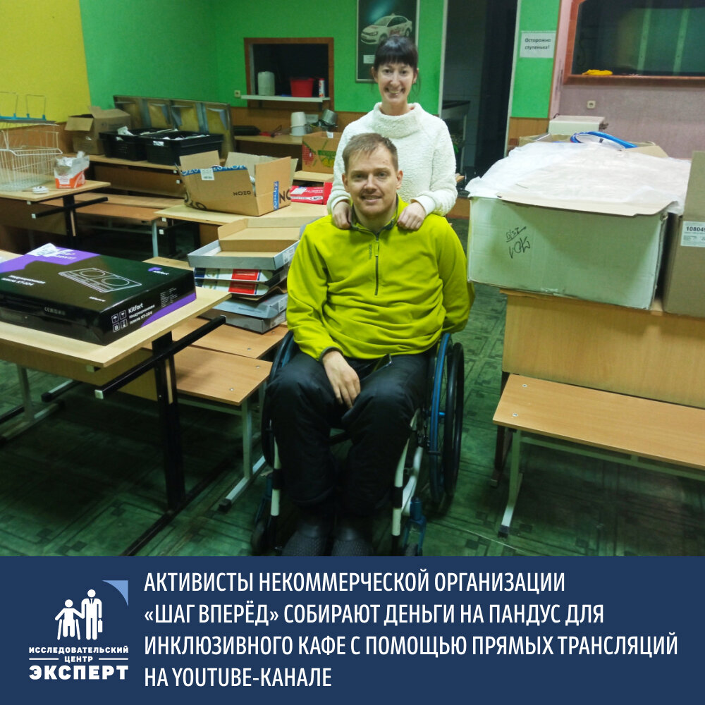 Активисты некоммерческой организации «Шаг вперед» Ольга Емельянова и Александр Коченков из Нижнего Тагила собирают деньги на пандус для своего инклюзивного кафе с помощью прямых трансляций на YouTube-канале.
