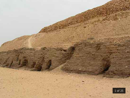 Ничего особенного не видно – груда адобов и щебенки (а в окружающей пустыне – круглая галька); рядом лишь обломки известняковых блоков.
