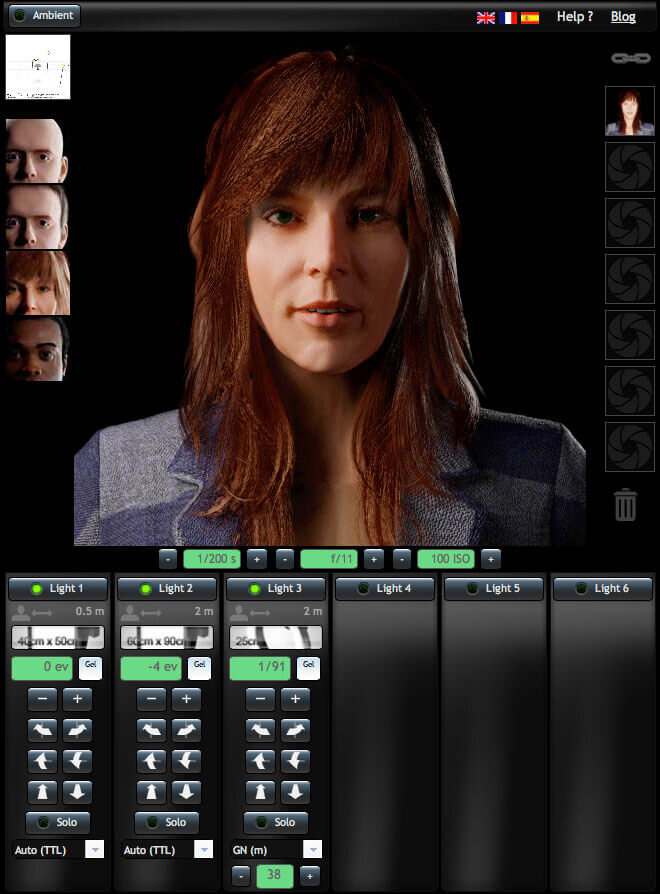 Интересное онлайн-приложение для начинающий фотографов, с его помощью можно моделировать схемы расстановки студийного света. 6 виртуальных источников можно расставлять в нужном положении и настраивать по-разным параметрам, используя различные насадки, регулировать их мощность.