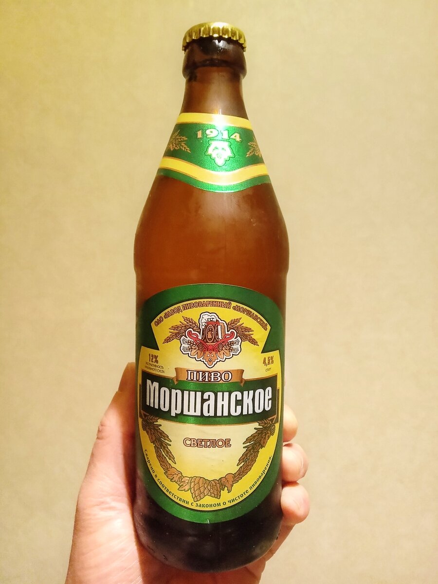 На этот раз с банальным названием "Моршанское светлое" от Моршанского пивзавода, соответственно. Этикетка, слава богу, скромная, классическая, а не то, что разработали дизайнеры "Отдохни" для трех сортов моршанского пива, которые я пробовал ранее (ссылки на них внизу статьи, как всегда). Впрочем, дизайн дизайном, но гораздо важнее то, что внутри. И сейчас мы узнаем, что там. Но сначала дадим слово пивоварам: Пиво «Моршанское светлое» обладает мягким вкусом с приятным хлебным послевкусием. Отлично подойдет для ценителей светлого пенного напитка. Коротко и ясно. Состав не райнхайтсгеботненький - присутствует кукурузная крупа и сахар. ТТХ: Алкоголь - 4.5% Плотность - 12% Горечь - ??? Хмель - ??? Пиво янтарное, прозрачное. Пены немного, опадает не очень быстро. Пахнет белым хлебом и слегка солодом. Во вкусе солодовая сладость, под конец появляется хмелевая горчинка. Послевкусие хлебное, с легкой горчинкой. Пиво очень питкое. В целом, пиво довольно приятное, но не очень сбалансированное -