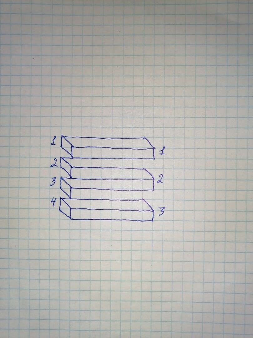 Шаг 3. С правой стороны прорисовываем параллелепипед аналогично нижнему и начинаем рисовать его с левой стороны.
