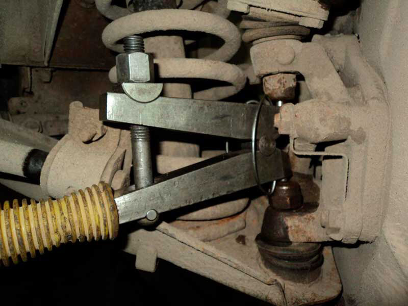 - После этого в действие вступала обычная труба или монтировка. При помощи этих незамысловатых инструментов, рычаг оттягивался в сторону, противоположную от поворотного кулака. Или от стойки оттягивался наконечник.
